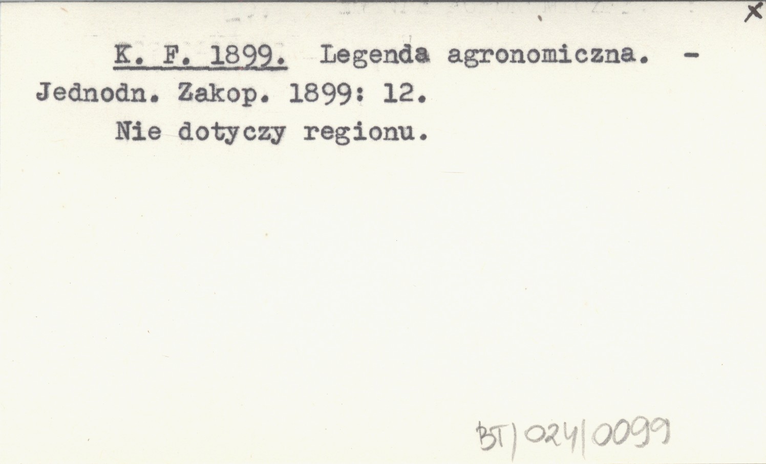 Jednodniówka Zakopiańska, 1899: 12. Nie dotyczy regionu.