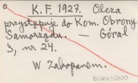 K. F. 1927 Olcza przystępuje do Kom. Obrony Samorządu.
