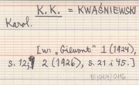 K. K. KWAŚNIEWSKI Karol [W: "Giewont" 1 (1924): 12; 2 (1926): 21, 45].