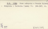 K. K. 1932 Nowe odkrycia w faunie Polski.
