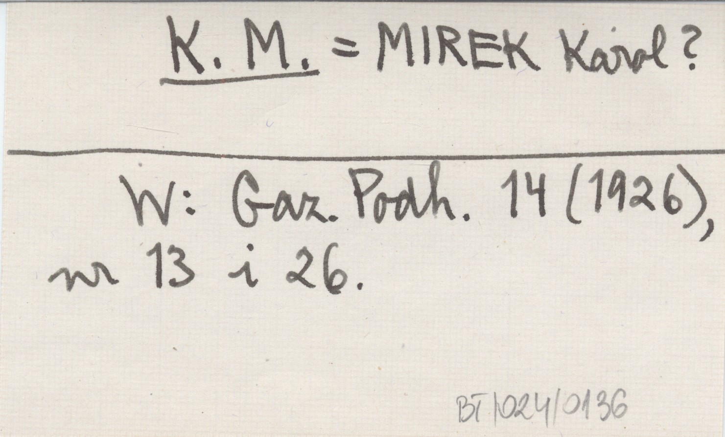 K. M. MIREK Karol? Gazeta Podhalańska 14 (1926), nr 13, 26.