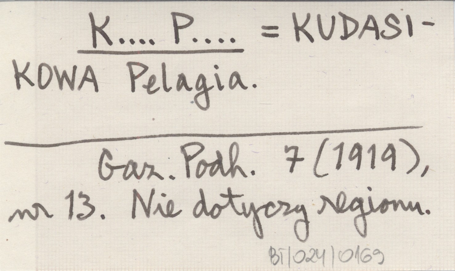K.... P.... KUDASIKOWA Pelagia Gazeta Podhalańska 7 (1919), nr 13. Nie dotyczy regionu.