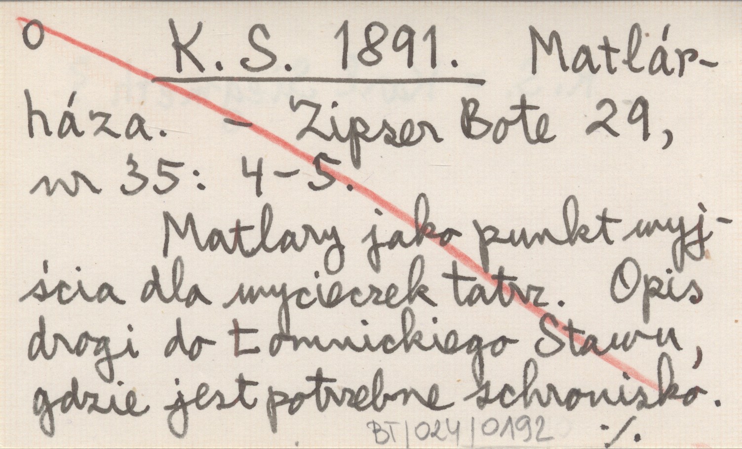 Zipser Bote, 29, nr 35: 4-5. Matlary jako punkt wyjścia dla wycieczek tatrzańskich. Opis drogi do Łomnickiego Stawu, gdzie jest potrzebne schronisko. K. S. = Karol Siegmeth?