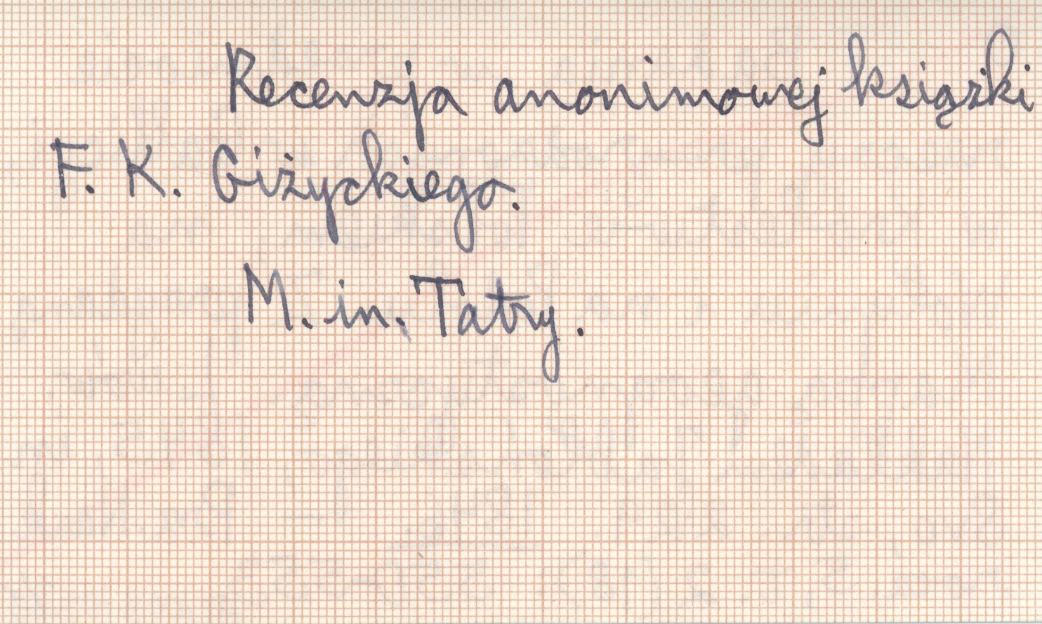 Przegląd Naukowy, R. 5, t. 2 (18): 550-553. Recenzja anonimowej książki F. K. Giżyckiego. M. in. Tatry.