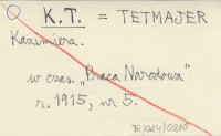 K. T, TETMAJER Kazimierz] W czasopiśmie "Praca Narodowa" r. 1915, nr 5.