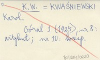 K. W. KWAŚNIEWSKI Karol Góral 1 (1925), nr 8, 10. Nr 8: artykuł, nr 10: korespondencja.