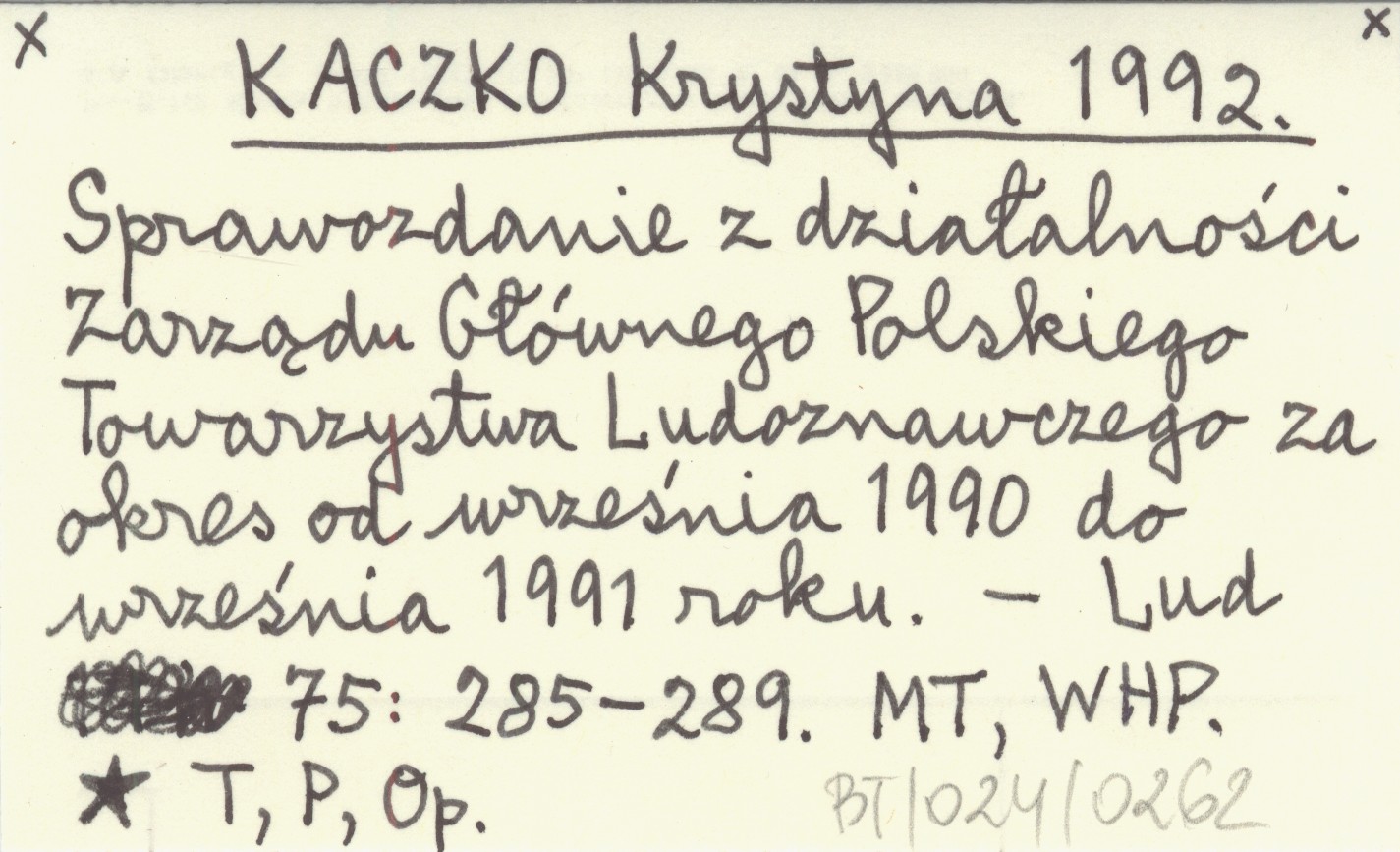 KACZKO Krystyna 1992 Sprawozdanie z działalności Zarządu Głównego Polskiego Towarzystwa Ludoznawczego za okres od września 1990 do września 1991 roku.