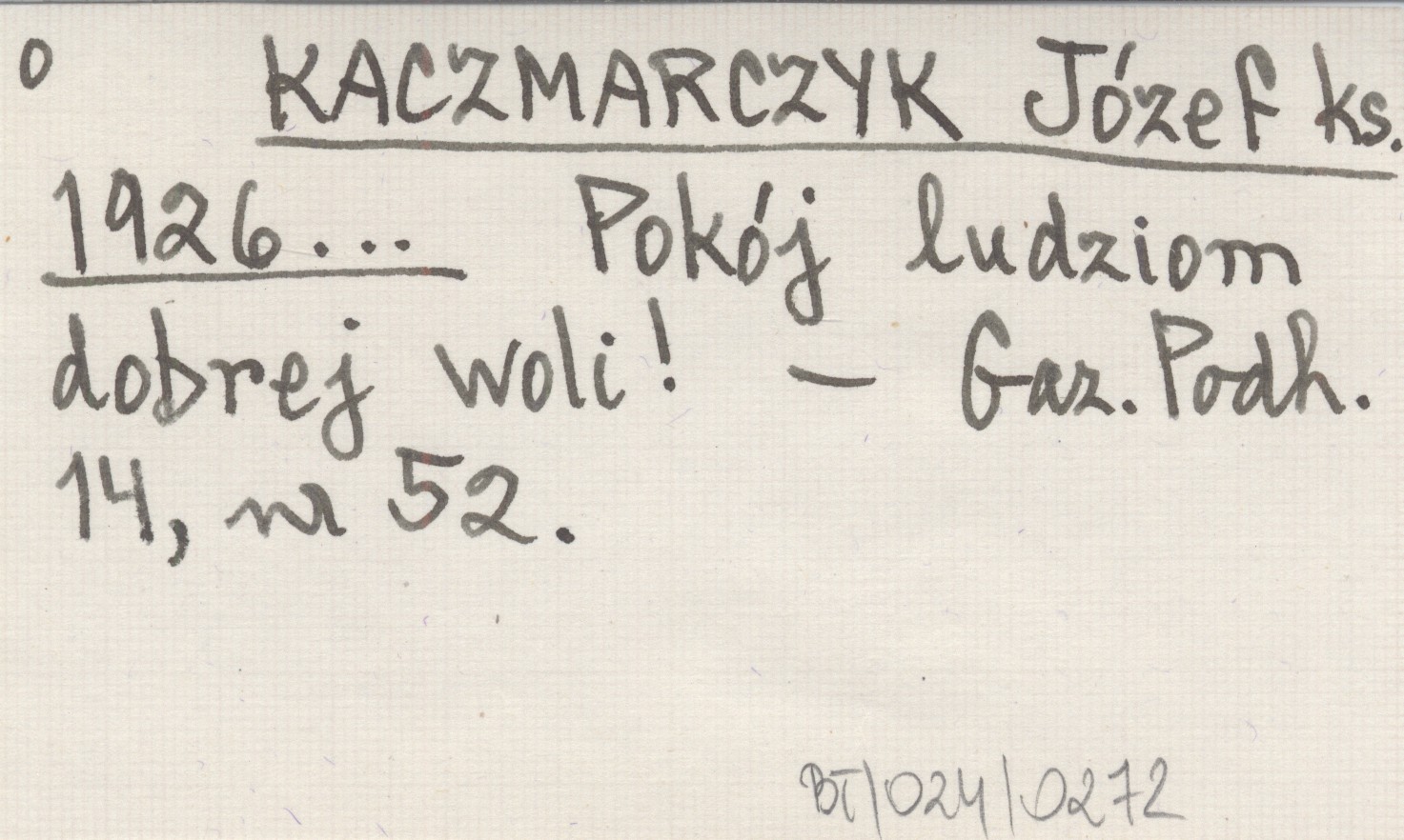 KACZMARCZYK Józef ks. 1926... Pokój ludziom dobrej woli! Gazeta Podhalańska 14, nr 52.