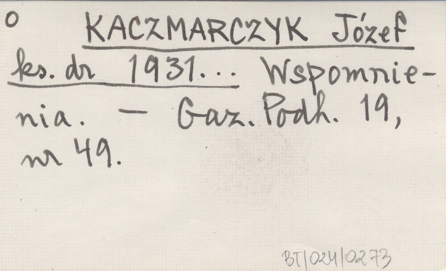 KACZMARCZYK Józef ks. dr