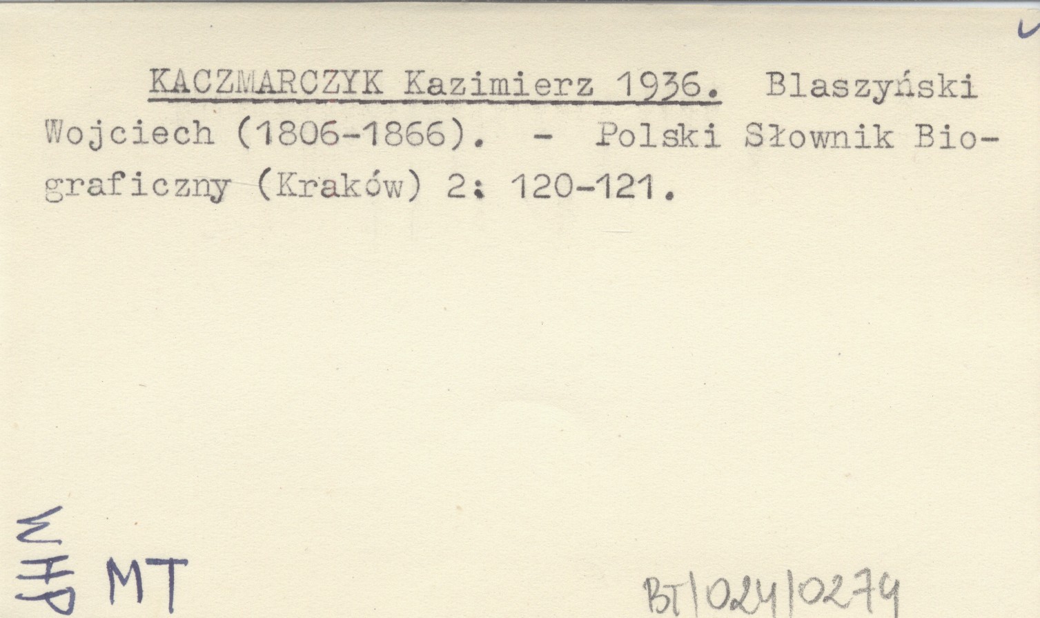 KACZMARCZYK Kazimierz 1936 Blaszyński Wojciech (1806-1866).