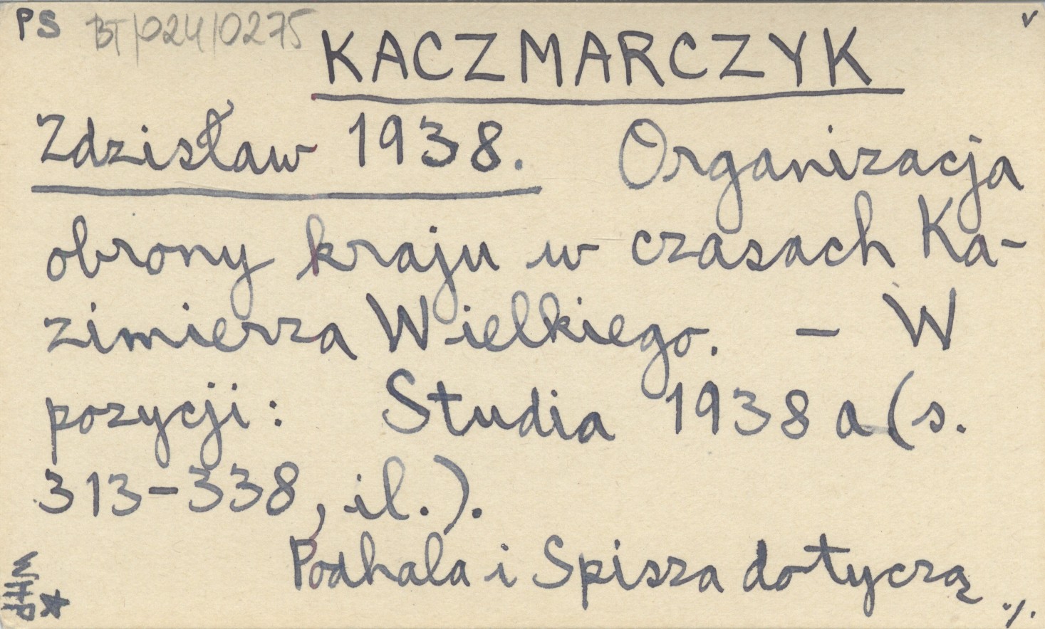 KACZMARCZYK Zdzisław 1938 Organizacja obrony kraju w czasach Kazimierza Wielkiego.