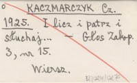 KACZMARCZYK Józef ks. 1926... Pokój ludziom dobrej woli! Gazeta Podhalańska 14, nr 52.