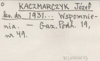 KACZMARCZYK Józef ks. dr 1931... Wspomnienia.