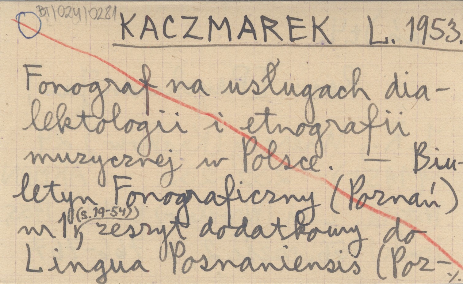 KACZMAREK L. 1953 Fonograf na usługach dialektologii i etnografii muzycznej w Polsce.