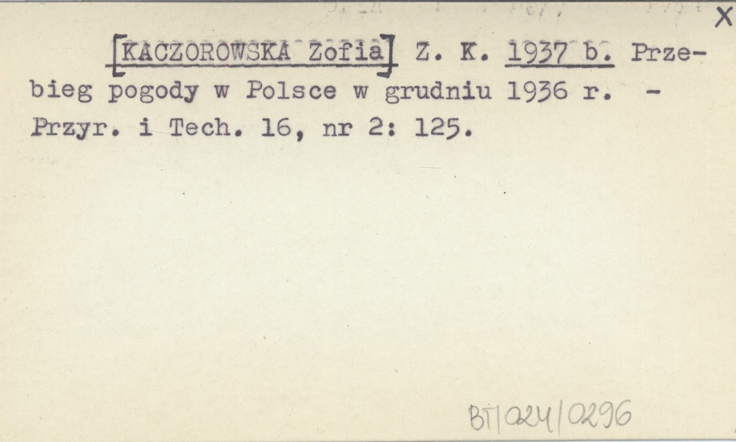 Z. K. [KACZOROWSKA Zofia] 1937 b Przebieg pogody w Polsce w grudniu 1936 r.