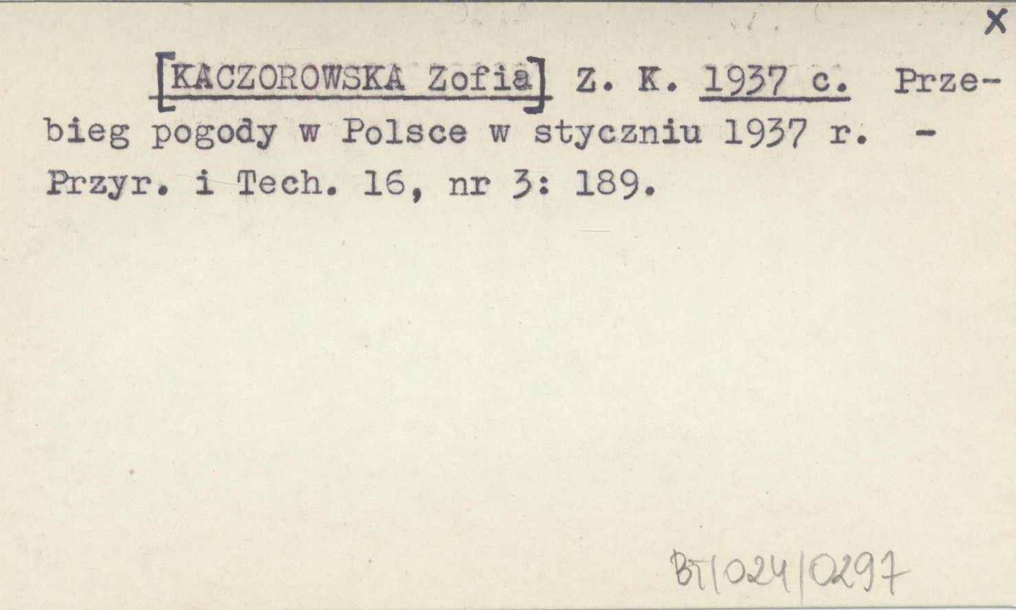 Z. K. [KACZOROWSKA Zofia] 1937 c Przebieg pogody w Polsce w styczniu 1937 r.