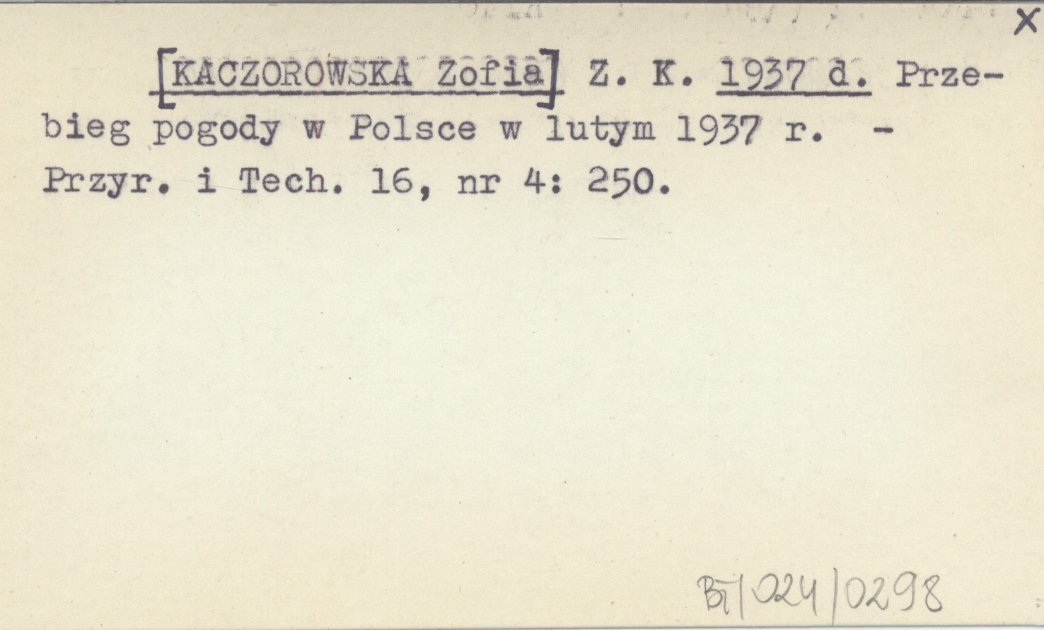 Z. K. [KACZOROWSKA Zofia] 1937 d Przebieg pogody w Polsce w lutym 1937 r.