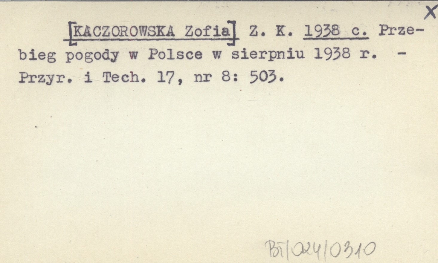 Z. K. [KACZOROWSKA Zofia] 1938 c Przebieg pogody w Polsce w sierpniu 1938 r.