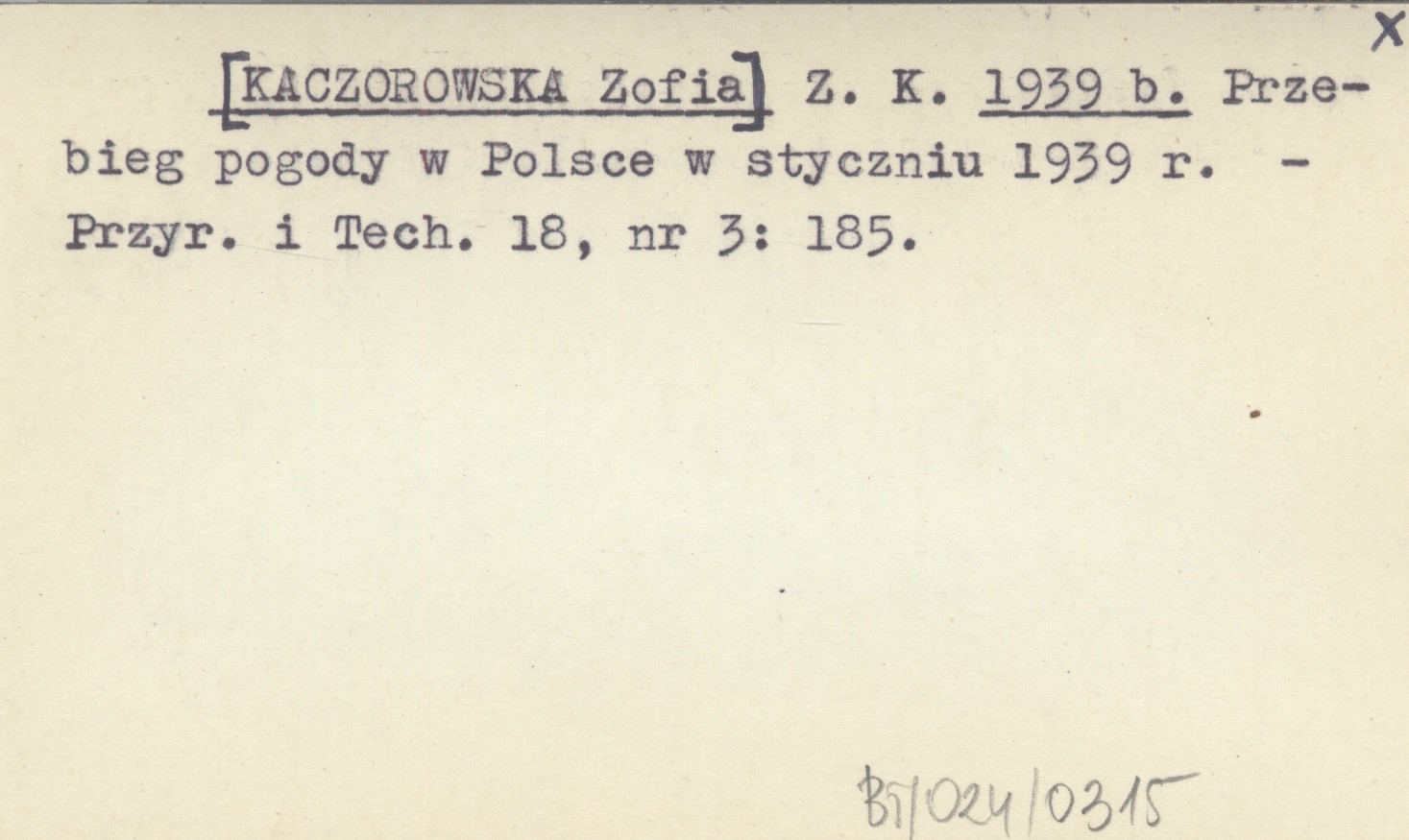 Z. K. [KACZOROWSKA Zofia] 1939 b Przebieg pogody w Polsce w styczniu 1939 r.