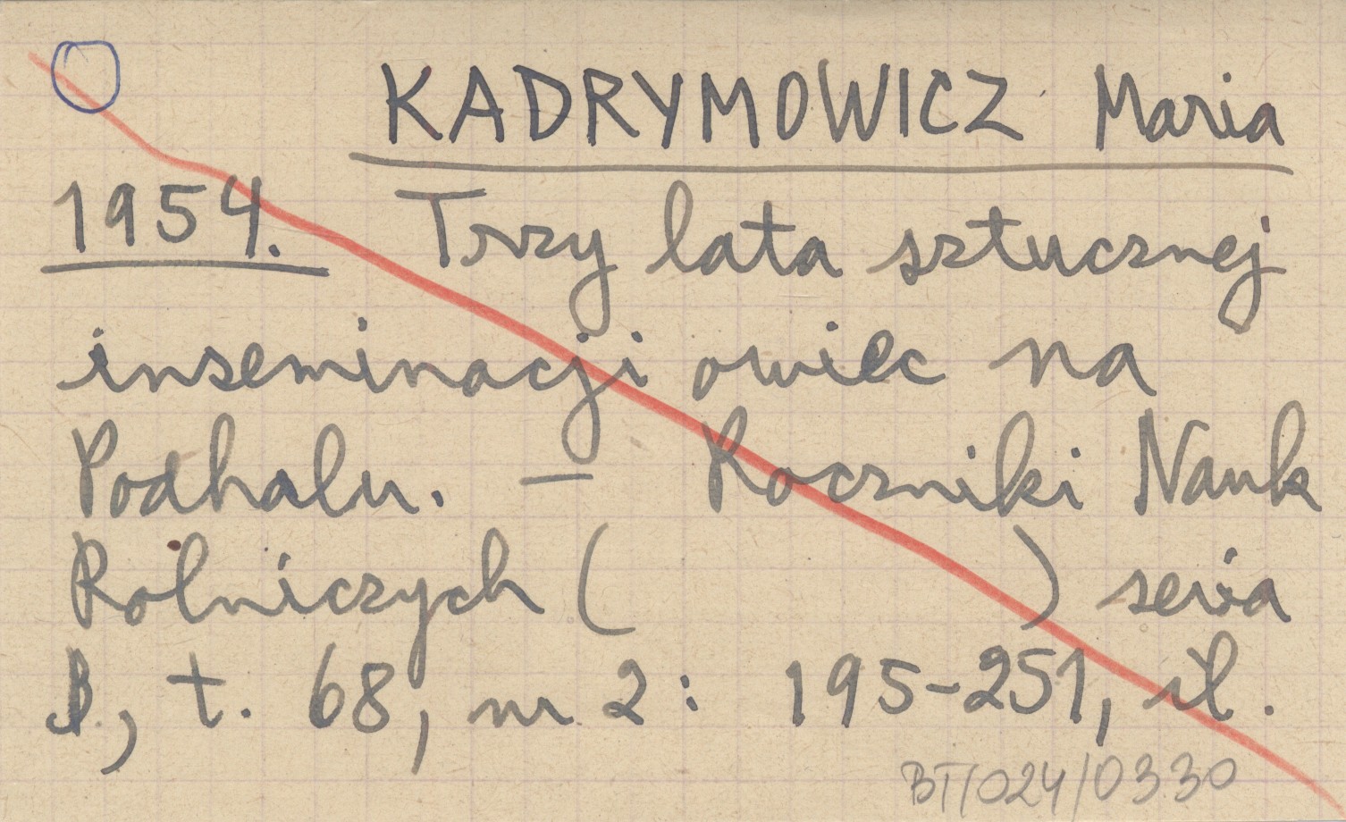 KADRYMOWICZ Maria 1954 Trzy lata sztucznej inseminacji owiec na Podhalu.