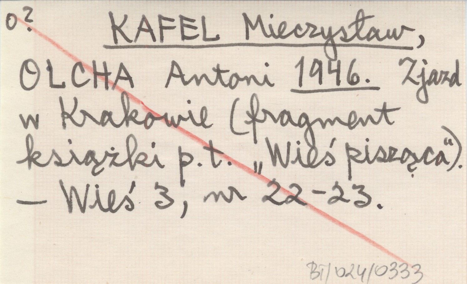 KAFEL Mieczysław OLCHA, Antoni. ; 1946 Zjazd w Krakowie (fragment książki p.t. "Wieś pisząca").