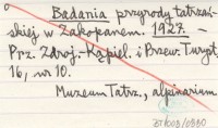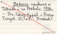 Badania naukowe w Tatrach i na Podhalu. 1931