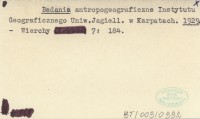 Badania antropogeograficzne Instytutu Geograficznego Uniw. Jagiell. w Karpatach. 1929