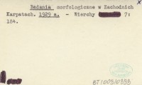 Badania morfologiczne w Zachodnich Karpatach. 1929 a