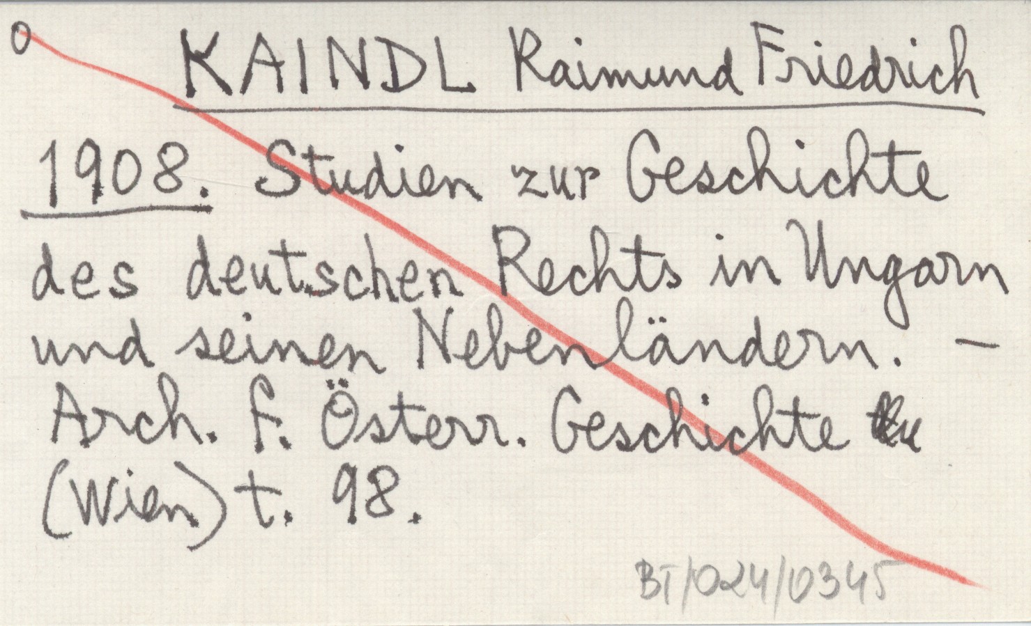KAINDL Raimund Friedrich 1908 Studien zur Geschichte des deutschen Rechts in Ungarn und seinen Nebenländern.