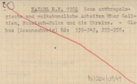 KAINDL R. F. 1902 Neue anthropologische und volkskundliche Arbeiten über Galizien, Russisch-Polen und die Ukraine.