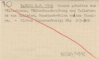KAINDL R. F. 1904 Neuere Arbeiten zur Völkerkunde, Völkerbeschreibung und Volkskunde von Galizien, Russisch-Polen und der Ukraine.