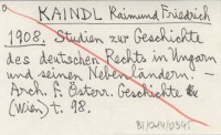 KAINDL Raimund Friedrich 1908 Studien zur Geschichte des deutschen Rechts in Ungarn und seinen Nebenländern.