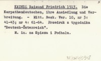 KAINDL Raimund Friedrich 1913 Die Karpathendeutschen, ihre Ansiedlung und Verbreitung.