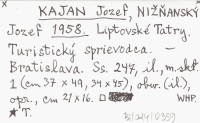 KAJAN Jozef NIŽŇANSKÝ, Jozef. ; 1958 Liptovské Tatry. Turistický sprievodca.