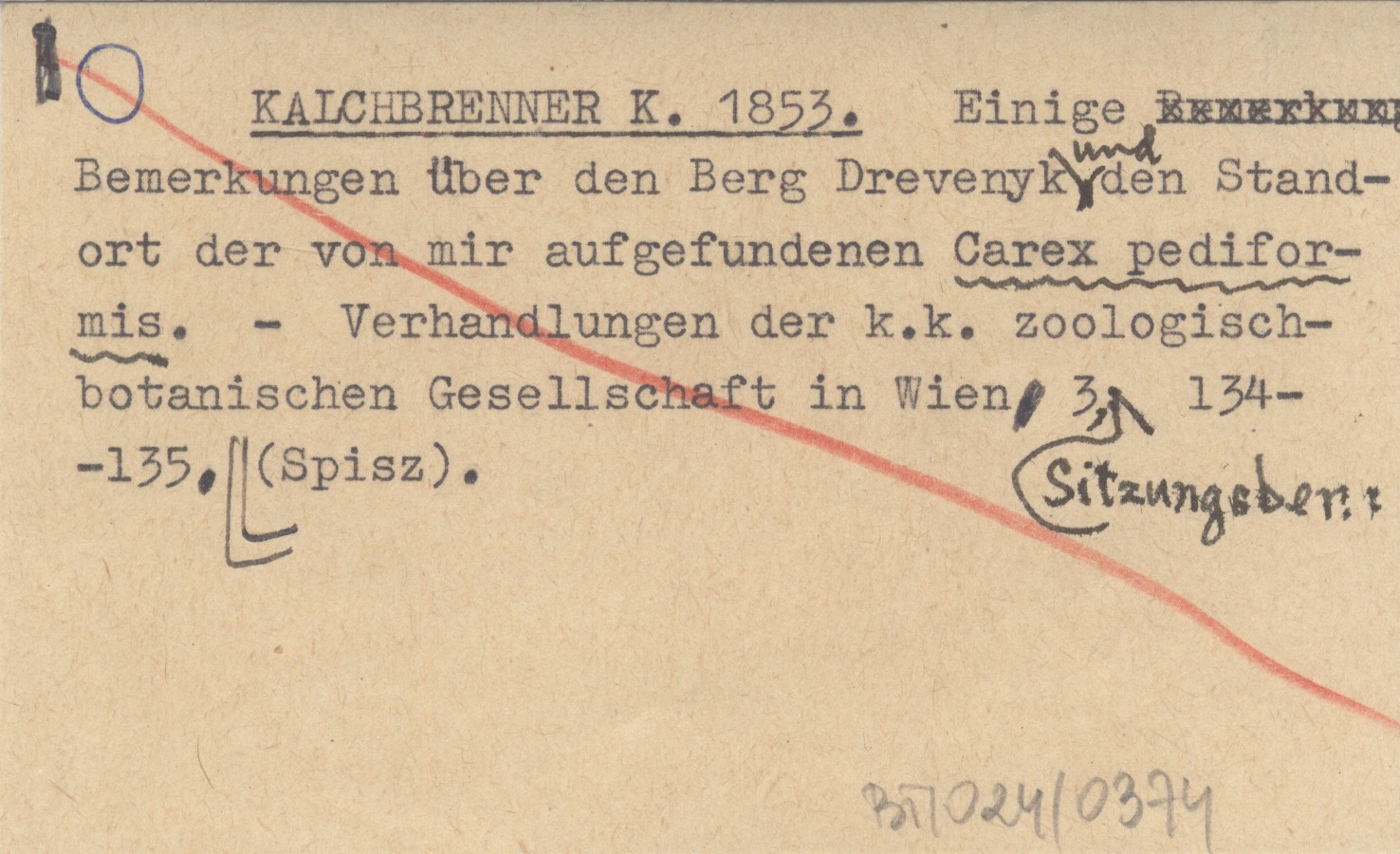 KALCHBRENNER K. 1853 Einige Bemerkungen über den Berg Drevenyk und den Standort der von mir aufgefundenen Carex pediformis.