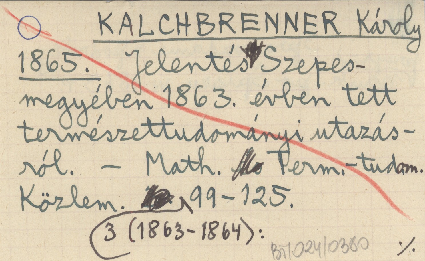 KALCHBRENNER Károly 1865 Jelentés Szepesmegyében 1863. évben tett természettudományi utazásról.