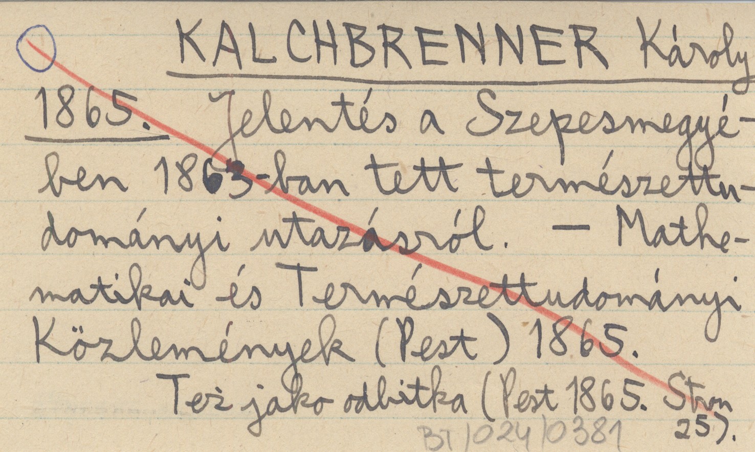 KALCHBRENNER Károly 1865 Jelentés a Szepesmegyében 1863-ban tett természettudományi utazásról.