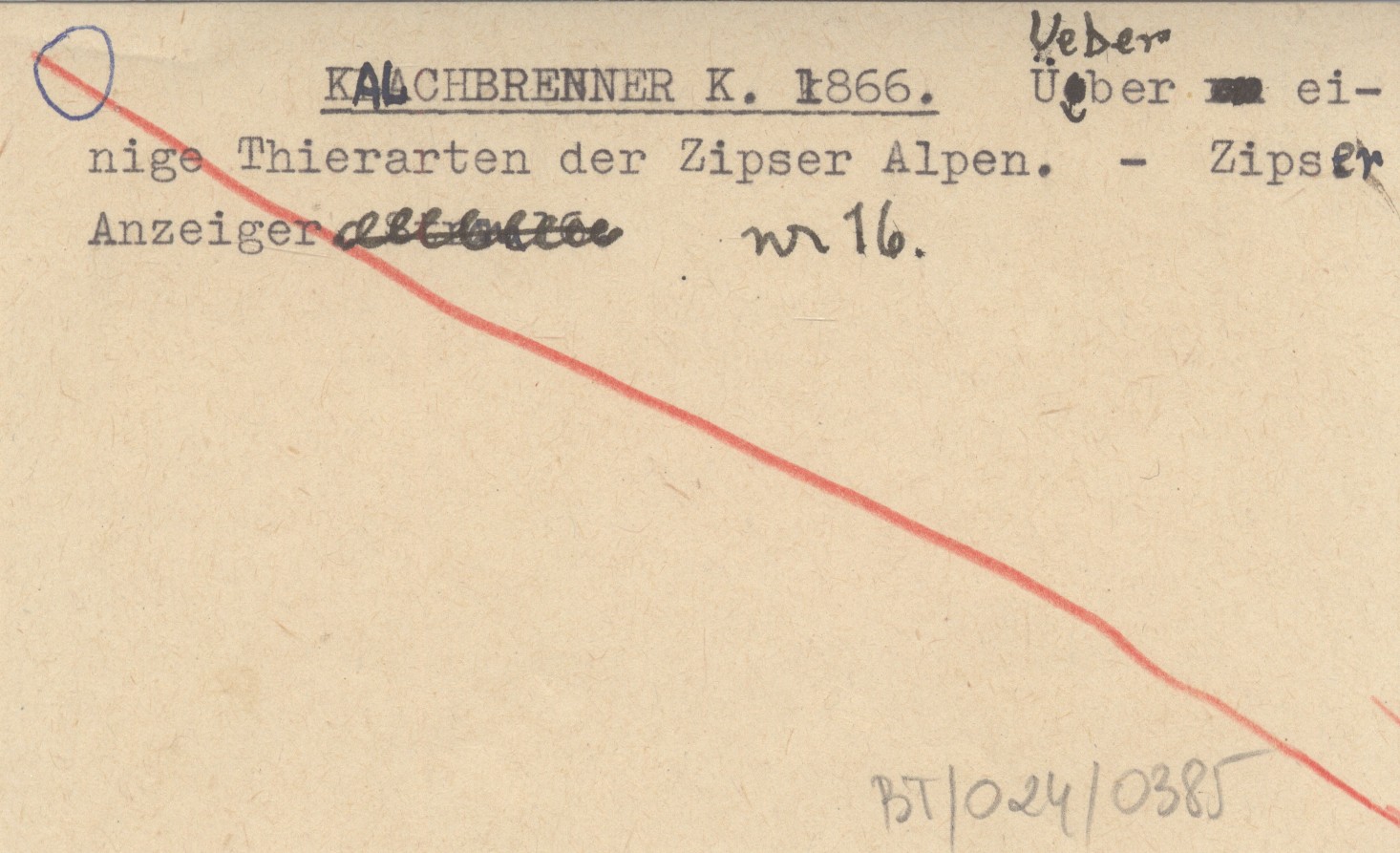 KALCHBRENNER K. 1866 Ueber einige Thierarten der Zipser Alpen.