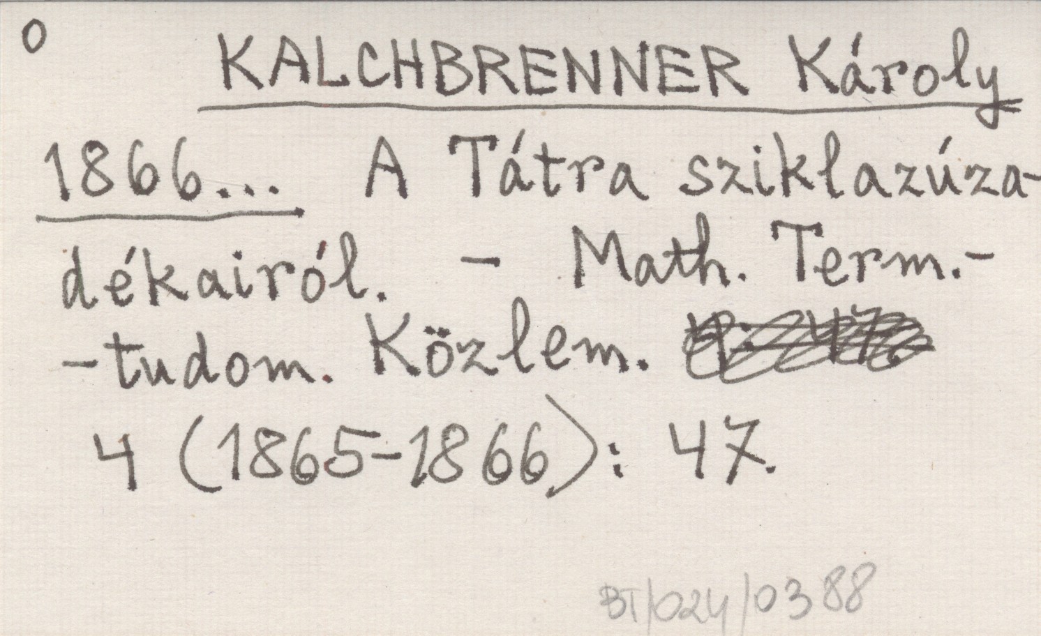 Matematikai és Természet-tudományi Közlemények, 4 (1865-1866): 47.