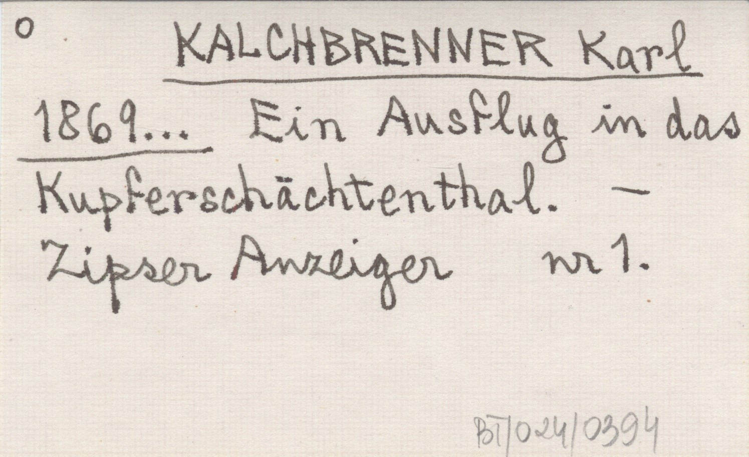 KALCHBRENNER Karl 1869... Ein Ausflug in das Kupferschächtenthal.