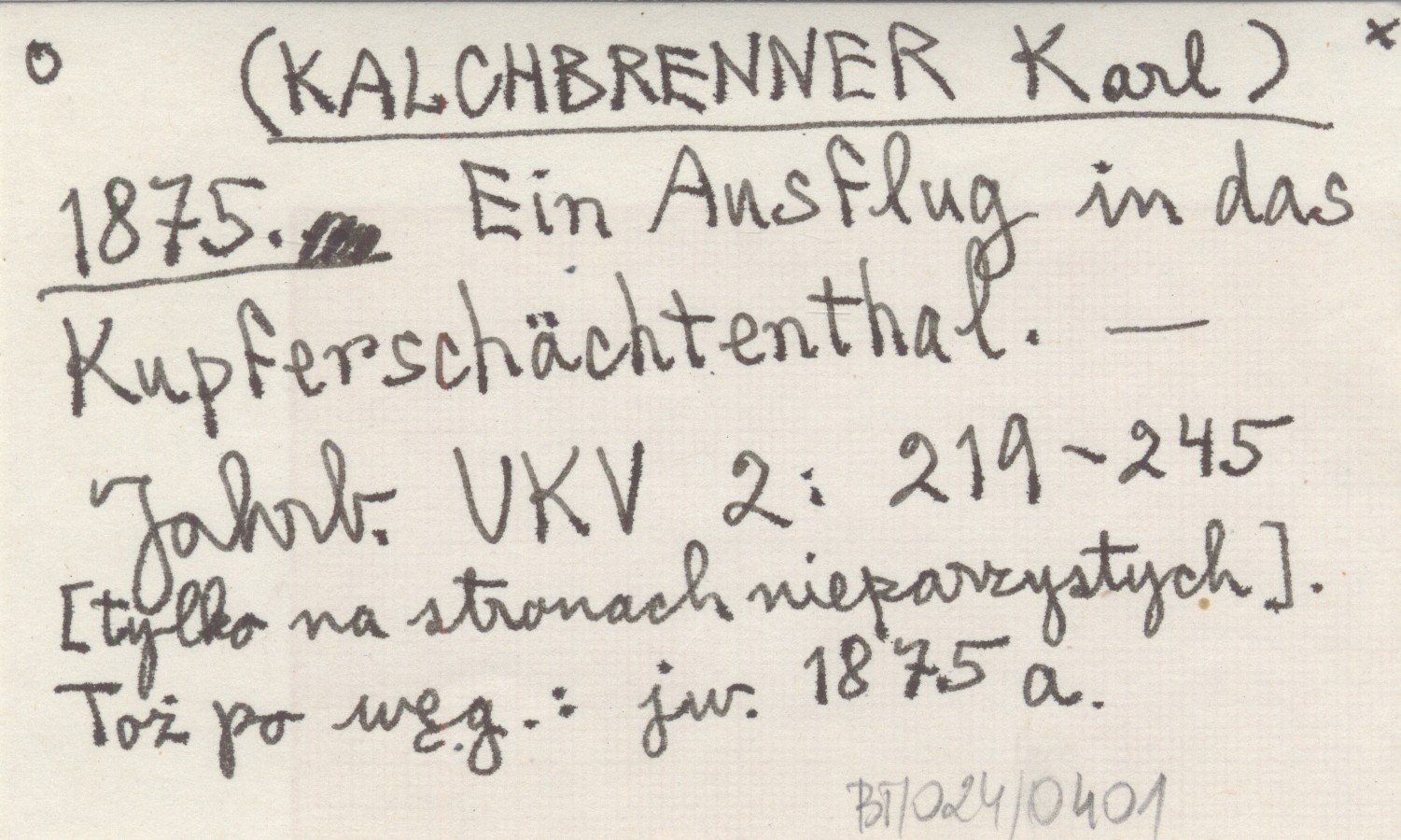 (KALCHBRENNER Karl) 1875 Ein Ausflug in das Kupferschächtenthal.