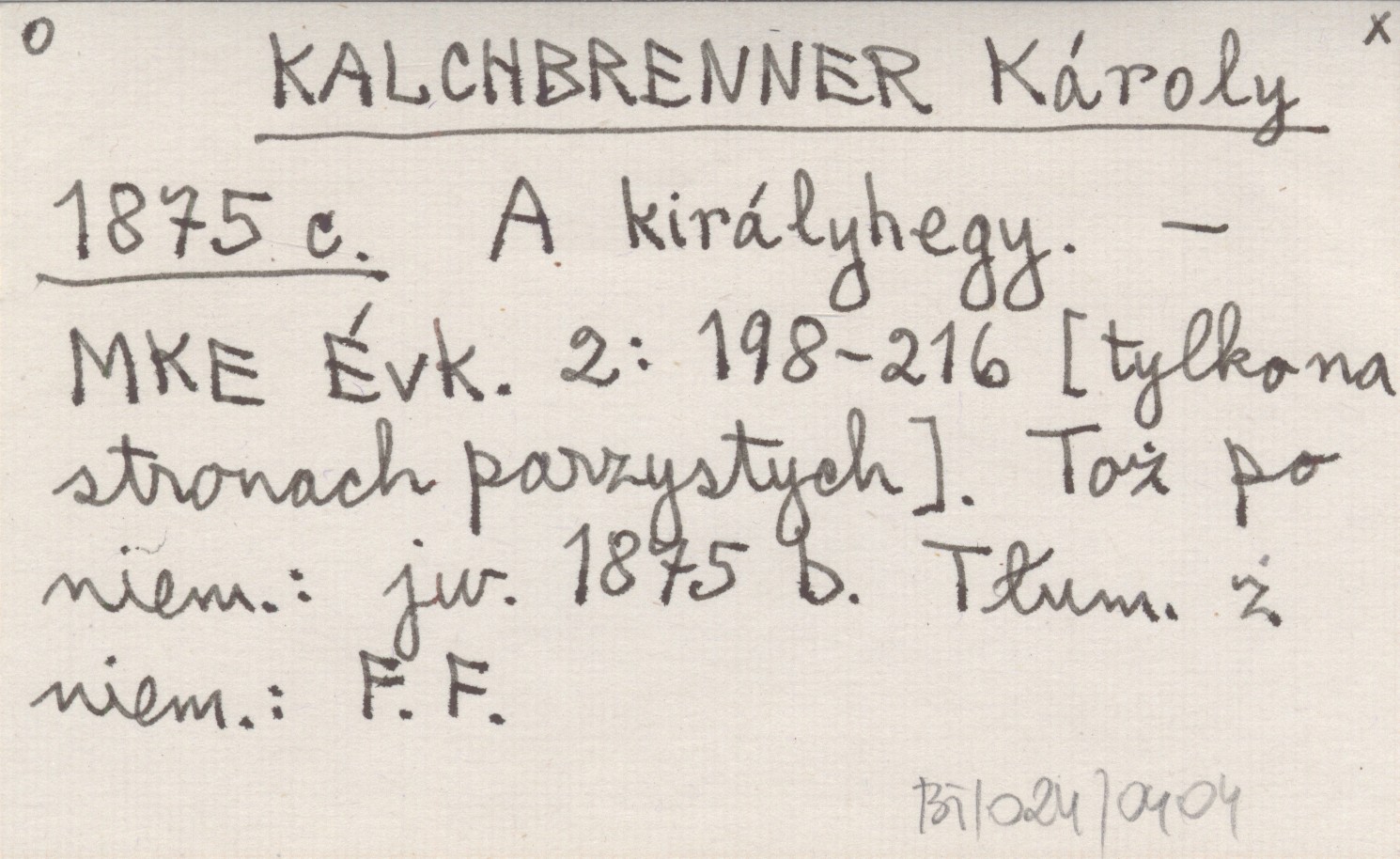 A Magyarországi Kárpát Egyesület Évkönyve, 2: 198-216. [Tekst tylko na stronach parzystych]. Toż po niemiecku: jw. 1875 b. Tłumaczenie z niemieckiego: F.F. jw. 1875 b