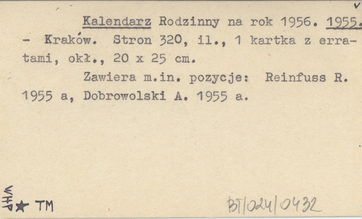 Kraków , 320 s., il., 1 k. (err.), okł., 20x25 cm. Zawiera m. in. pozycje: Reinfuss R. 1955 a, Dobrowolski A. 1955 a.