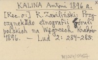 KALINA Antoni 1896 a R. Zawiliński: Przyczynek II do etnografii górali polskich na Węgrzech. Kraków 1896.