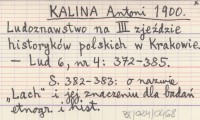 KALINA Antoni 1900 Ludoznawstwo na III zjeździe historyków polskich w Krakowie.