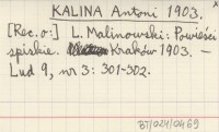 KALINA Antoni 1903 L. Malinowski: Powieści spiskie. Kraków 1903.
