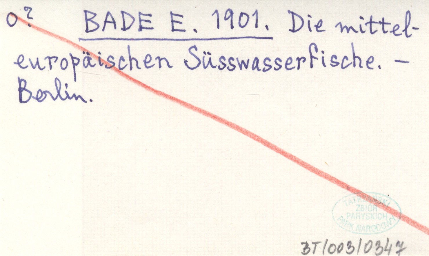 BADE E. 1901 Die mittel-europäischen Süsswasserfische.