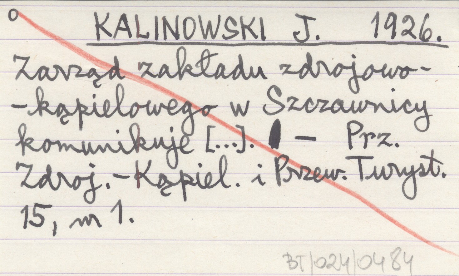 KALINOWSKI J. 1926 Zarząd zakładu zdrojowo-kąpielowego w Szczawnicy komunikuje [...].