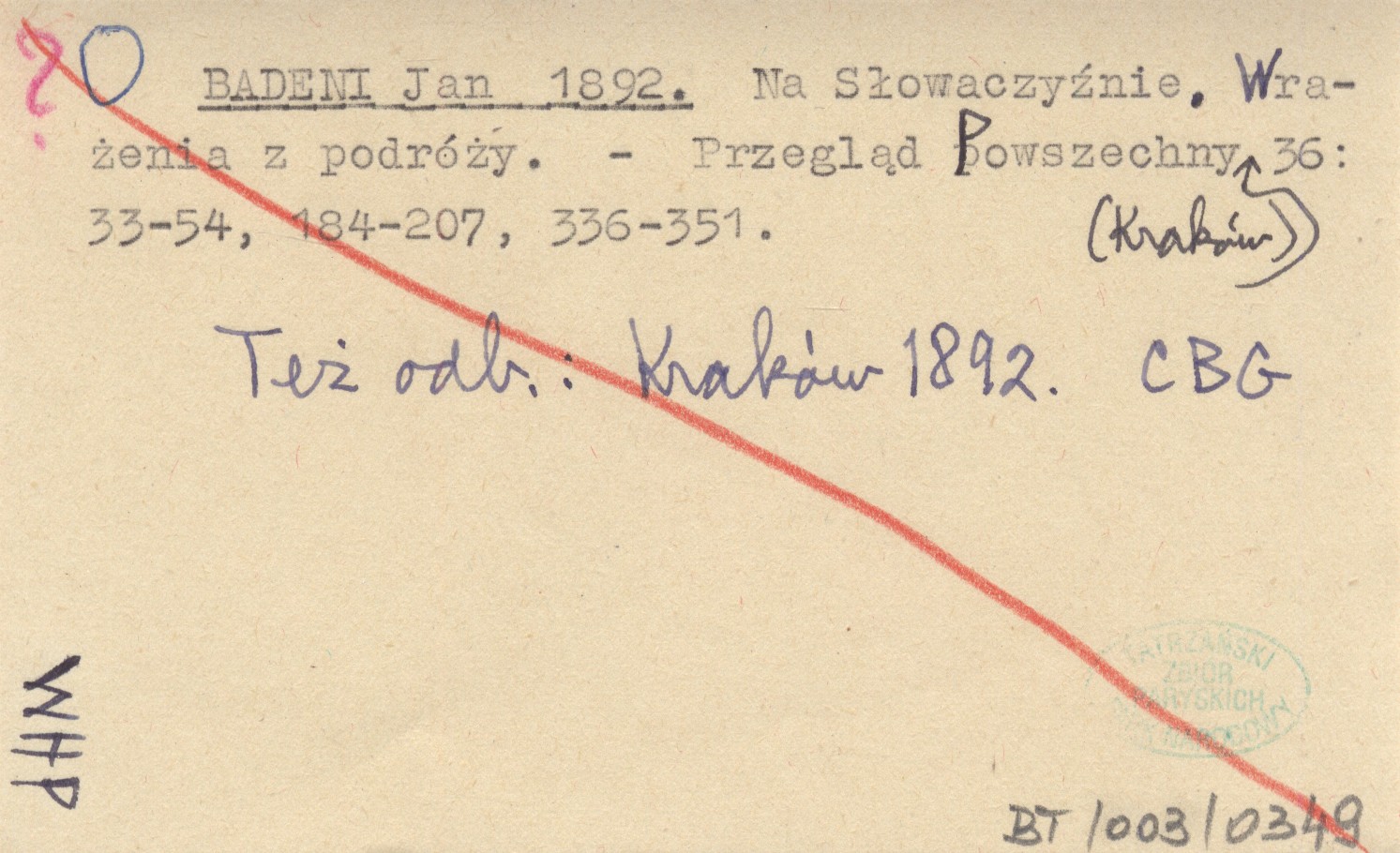 BADENI Jan 1892 Na Słowaczyźnie. Wrażenia z podróży.