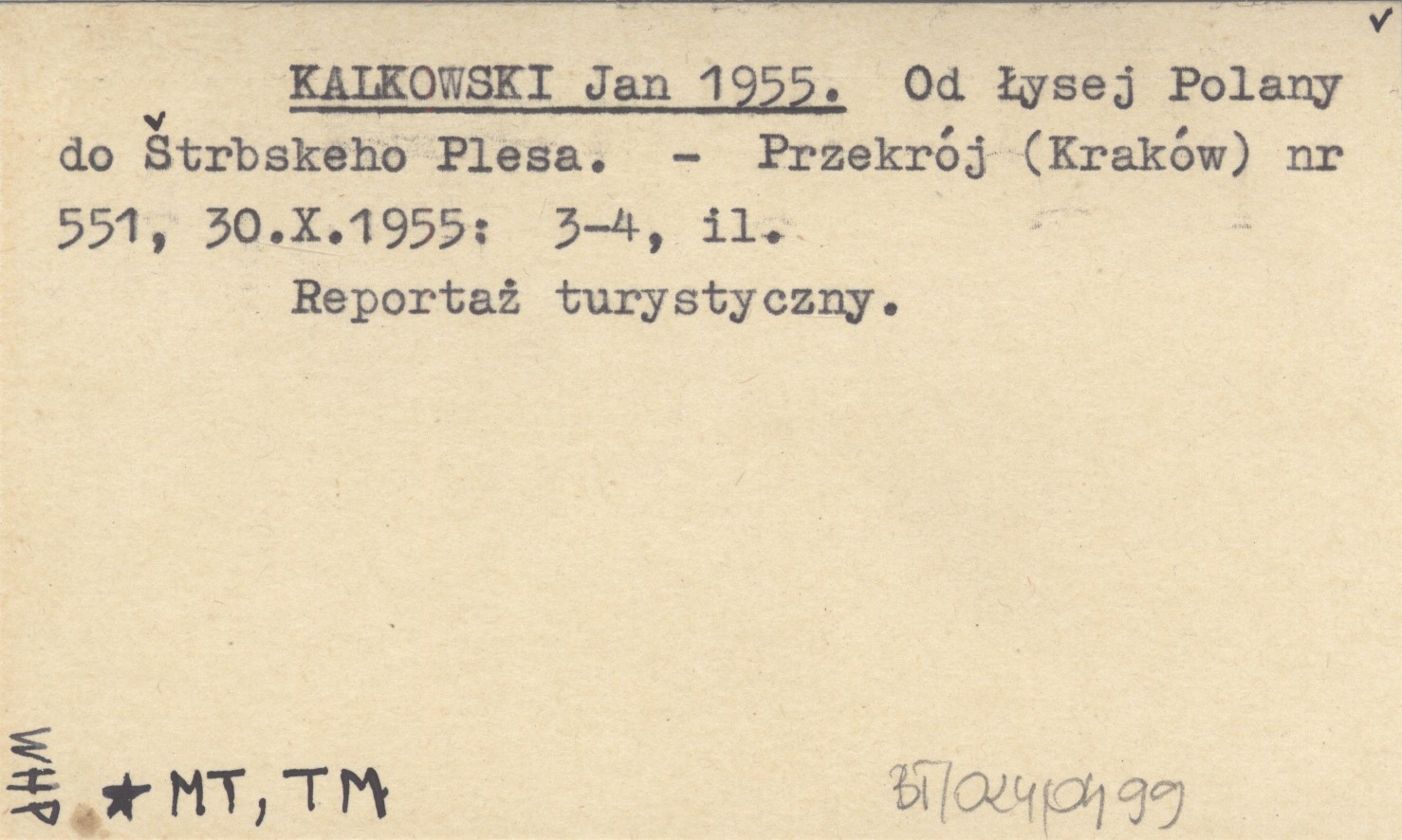 KALKOWSKI Jan 1955 Od Łysej Polany do Štrbskeho Plesa.